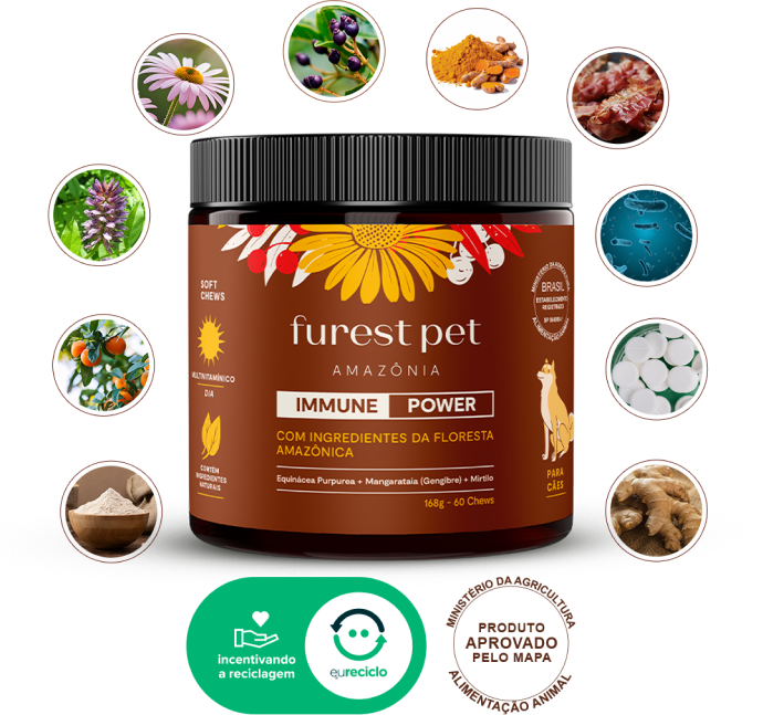 O Immune Power é um suplemento natural mastigável que estimula e fortalece o sistema imunológico do seu cãozinho. Além disso, promove saúde digestiva e cardiovascular, fortalece as articulações, possui ação anti-inflamatória, expectorante, previne alergias e alivia os sintomas alérgicos. Excelente para promover a longevidade dos cães mais jovens e para manutenção da saúde e bem-estar dos pets sêniors!